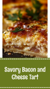 Impress guests with this savory bacon and cheese tart. An easy, elegant brunch or dinner idea with a flaky, golden crust. #recipes #baconrecipes #savorytart #cheesetart #easydinner